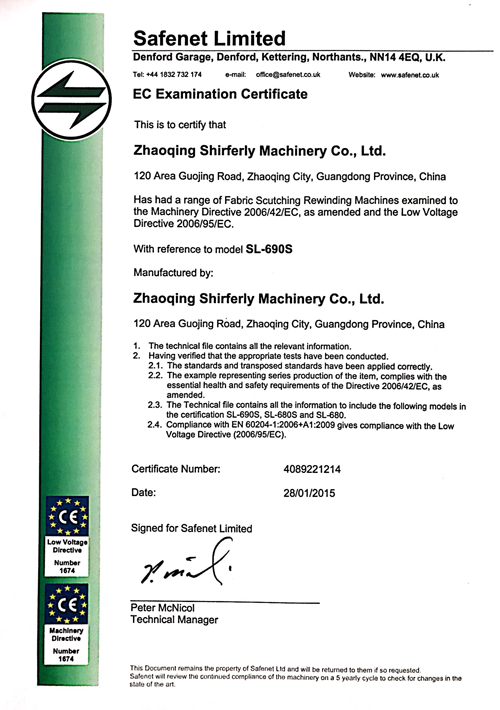 К настоящему времени компания Сянфэнли получила восемь патентов на полезную модель и один патент на промышленный образец, выданный Государственным ведомством интеллектуальной собственности Китая на нож для Станок для резки рулонной ткани и гладильный стол. Кроме того, Широкий спектр основных продуктов завоевал авторитет в Европейском союзе,Маркировка CE, выданная органом по сертификации сертификат,Прошел сертификацию системы менеджмента качества ISO9001: 2000.